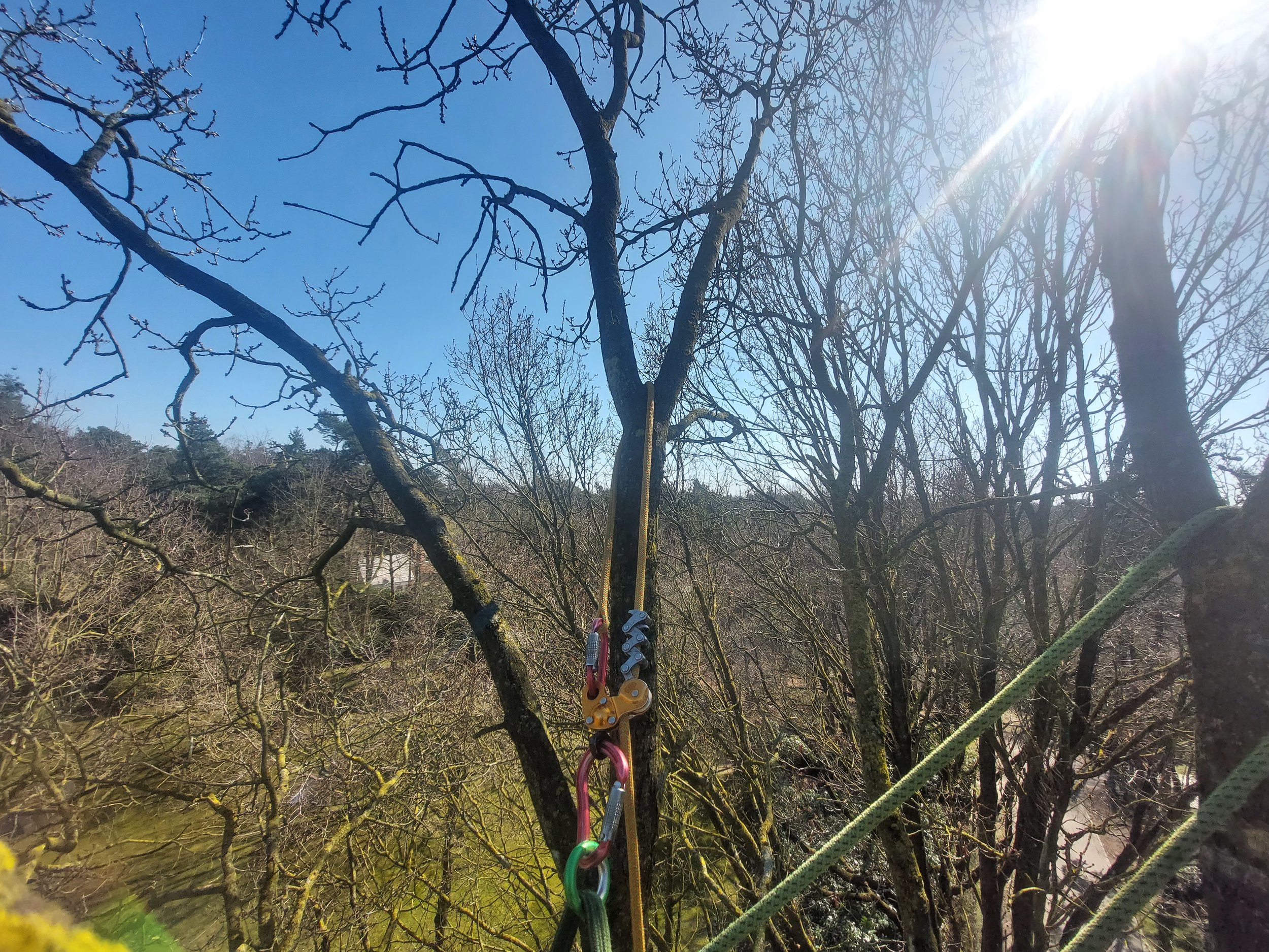 Veel bomen staan op plekken waar geen toegang is voor zwaar materiaal zoals hoogwerkers of kranen, voor deze moeilijk bereikbare bomen werken we al klimmend volgens erkende ETW-technieken. Dit gebeurt steeds met onze eigen veiligheid en die van anderen op de eerste plaats.